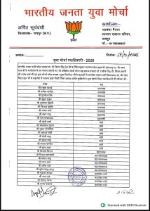 रायपुर. भारतीय जनता पार्टी युवा मोर्चा रायपुर शहर जिला कार्यकारणी घोषित हुई जिसमें वैभव शर्मा (गोपी) को भाजपा युवा मोर्चा शहर जिला मंत्री नियुक्त किया गया.